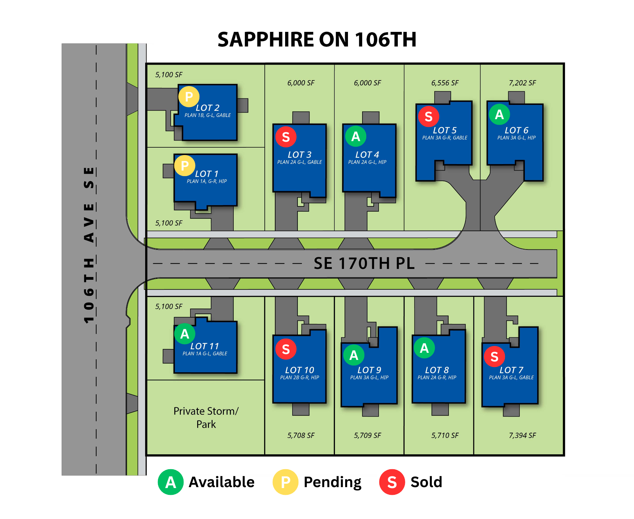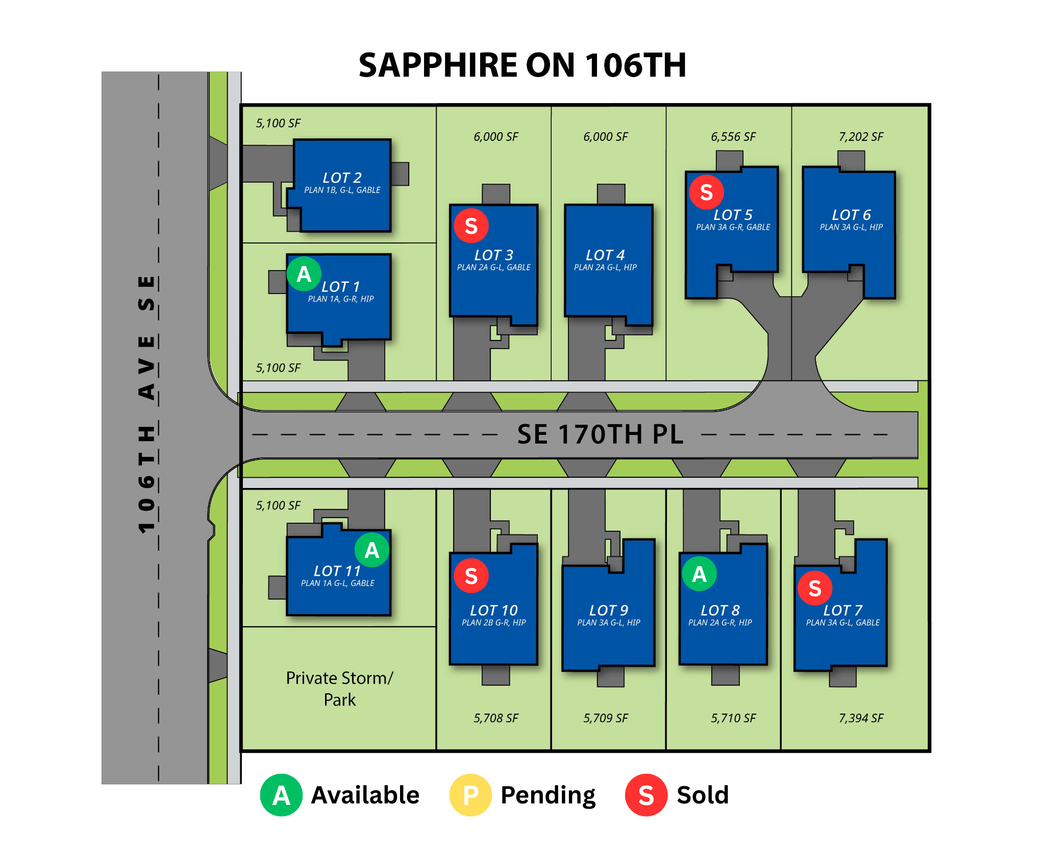 Sapphire Homes is excited to introduce 11 newly constructed single-family homes in the vibrant Renton area. These homes offer four thoughtfully designed floorplans ranging from 2,744 to 3,304 square feet, featuring 4 to 5 bedrooms, 2.5 to 3 bathrooms, and 2-car garages. Depending on the layout, select homes include a versatile office, dining room, or bedroom on the main floor. The spacious living rooms are highlighted by elegant fireplaces. Each home boasts a variety of outdoor living spaces, including covered front porches and either covered or uncovered side and back patios. High-end finishes throughout include stainless steel appliances, quartz countertops, and stunning waterproof wood-look luxury vinyl plank flooring. Enjoy the added benefit of onsite open space and the convenience of being just a short drive from local amenities and major freeways.