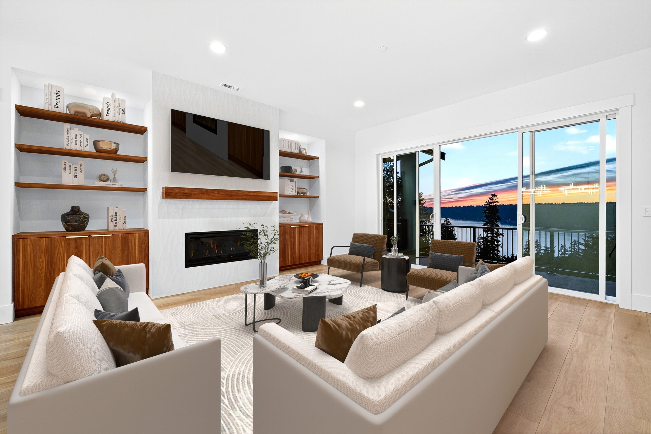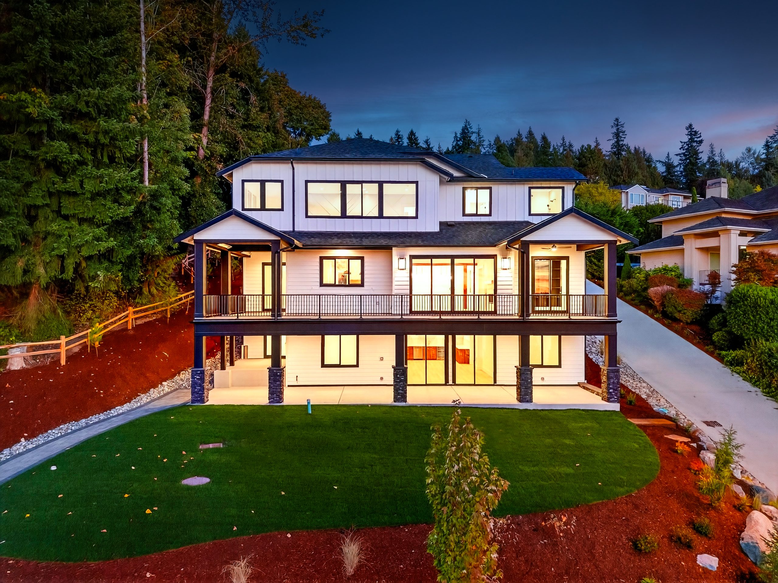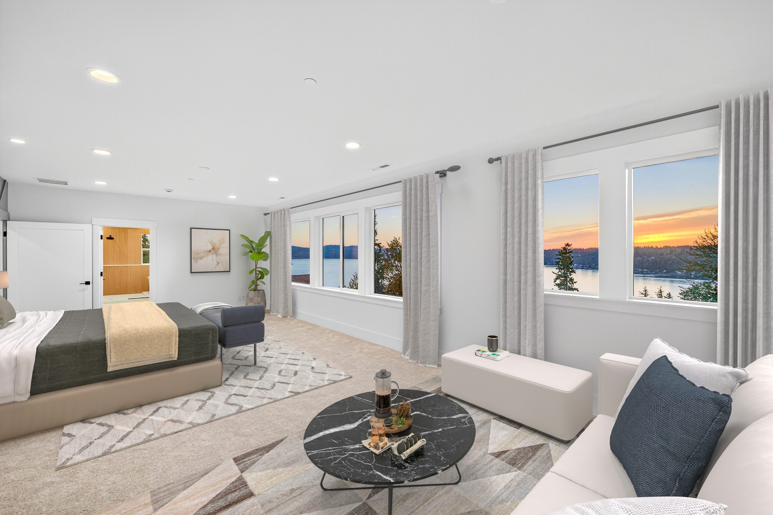 Sapphire Homes proudly presents an exceptional new construction luxury home in Sammamish’s Inglewood neighborhood with sweeping Lake Sammamish views from every level. This 6,301 square foot estate offers 6 beds, 5 baths, open-concept gourmet kitchen with Dacor appliances, formal dining, sunlit great room, private office, and guest room/ensuite. Upper-level primary suite includes sitting area, spa-like bath with soaking tub (enjoy expansive lake views here too!), and walk-in closet. Lower level has rec room with wet bar, yoga room/gym, and 2 additional bedrooms. Features heated floors, solar panels, mudroom (with second fridge/freezer, cubbies, and washer/dryer hook-up), covered outdoor living, and extended 2-car garage with storage bay. Large lot in top-rated Lake Washington School District, close to parks, trails, shopping, and more.