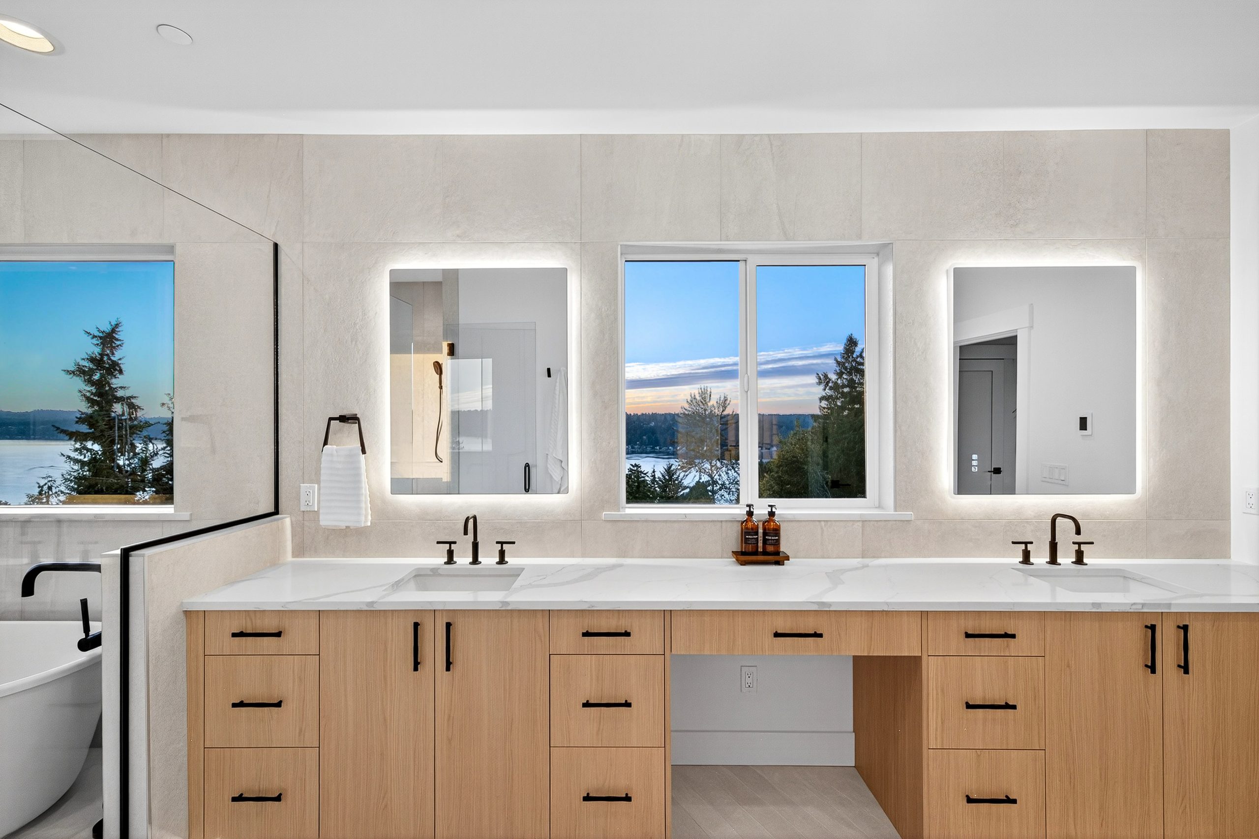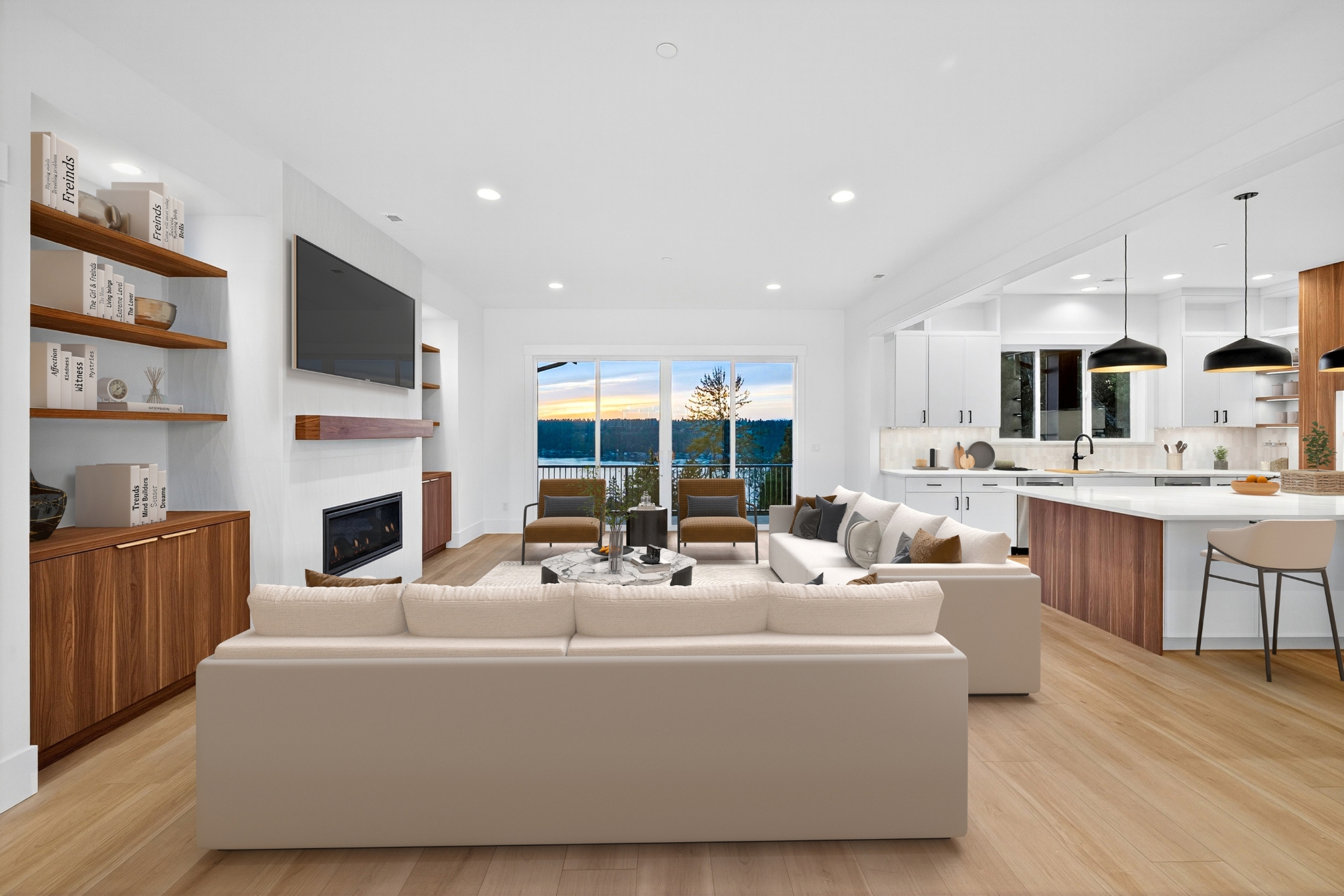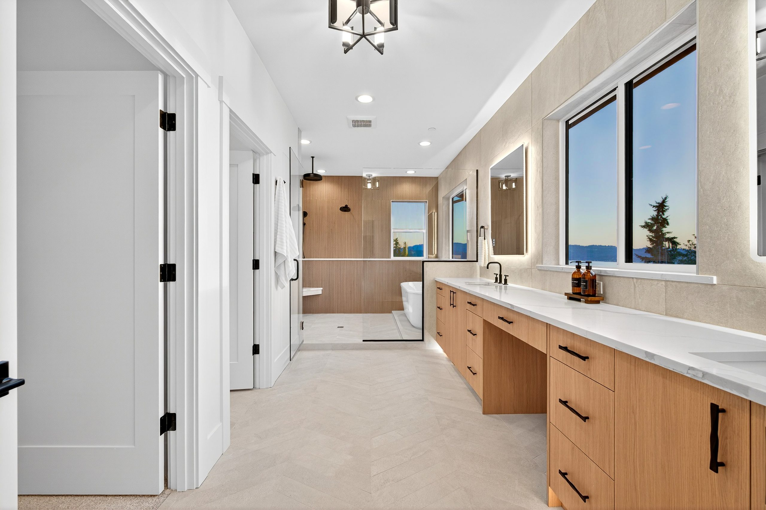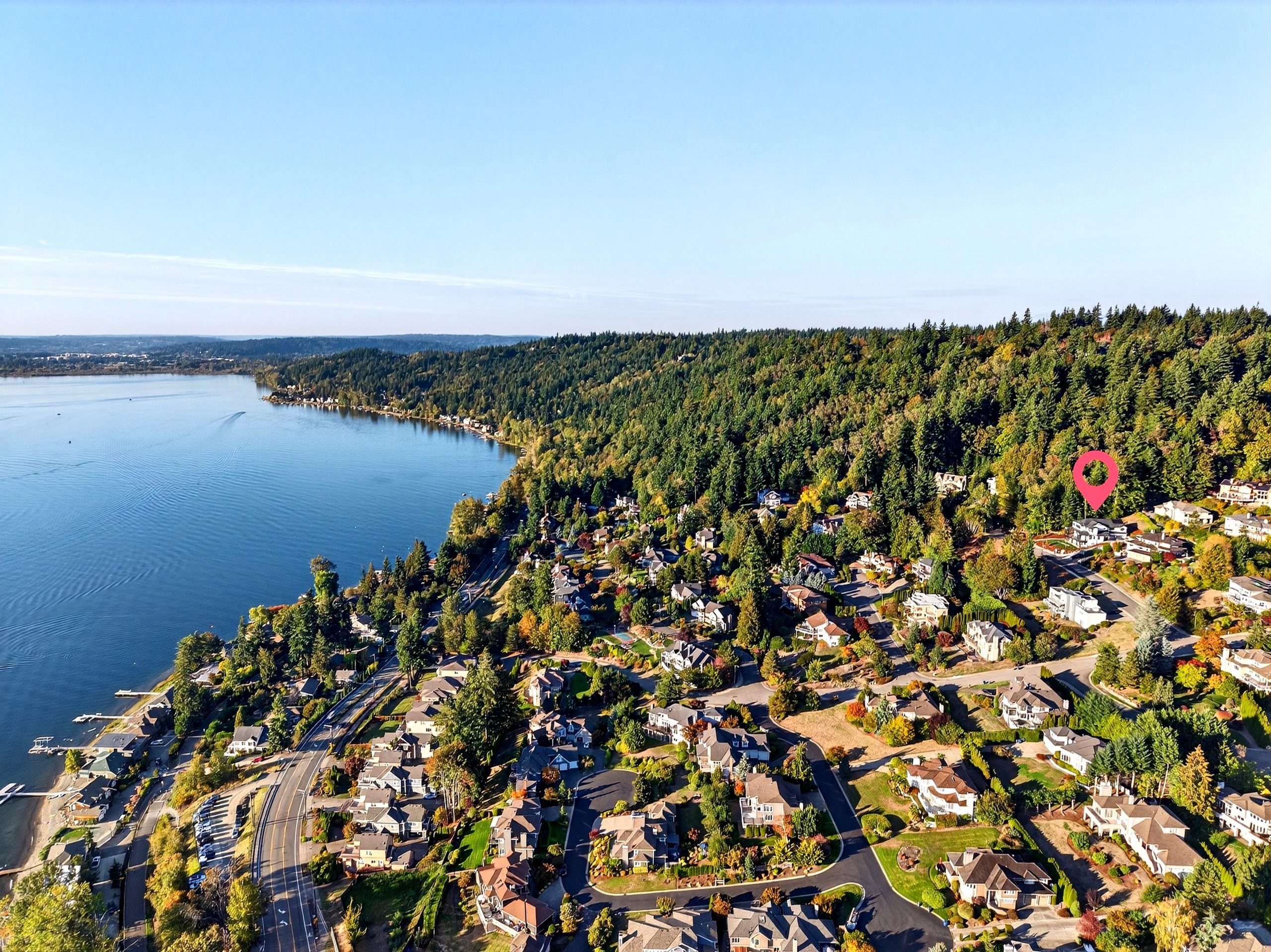 Sapphire Homes proudly presents an exceptional new construction luxury home in Sammamish’s Inglewood neighborhood with sweeping Lake Sammamish views from every level. This 6,301 square foot estate offers 6 beds, 5 baths, open-concept gourmet kitchen with Dacor appliances, formal dining, sunlit great room, private office, and guest room/ensuite. Upper-level primary suite includes sitting area, spa-like bath with soaking tub (enjoy expansive lake views here too!), and walk-in closet. Lower level has rec room with wet bar, yoga room/gym, and 2 additional bedrooms. Features heated floors, solar panels, mudroom (with second fridge/freezer, cubbies, and washer/dryer hook-up), covered outdoor living, and extended 2-car garage with storage bay. Large lot in top-rated Lake Washington School District, close to parks, trails, shopping, and more.